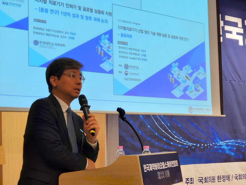 이 자리에서 이상규 연세대학교 교수(보건대학원장)는 디지털치료기기에 대한 글로벌 경쟁력 선점 전략에 대해 발표했다.