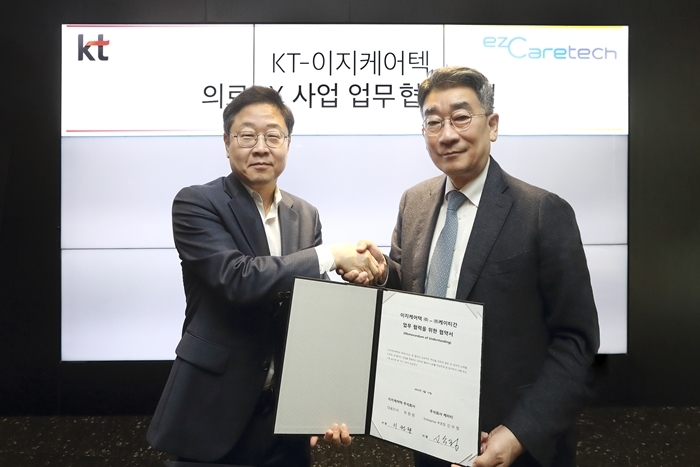 디지털 헬스케어 대표기업 이지케어텍(대표이사 위원량)은 지난 11일 KT와 '의료 디지털 전환(DX) 공동 사업협력'을 위한 업무협약(MOU)을 체결했다고 16일 밝혔다.