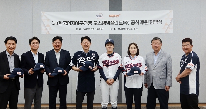 오스템임플란트 엄태관 대표이사와 한국여자야구연맹 황정희 회장 등 양 측 관계자가 참석한 가운데 진행된 이날 협약식을 통해 오스템임플란트는 여자야구 발전을 위한 후원금을 기탁하기로 하고 '2023 제3회 BFA 여자야구 아시안컵' 출전을 앞둔 국가대표팀의 선전을 기원했다.