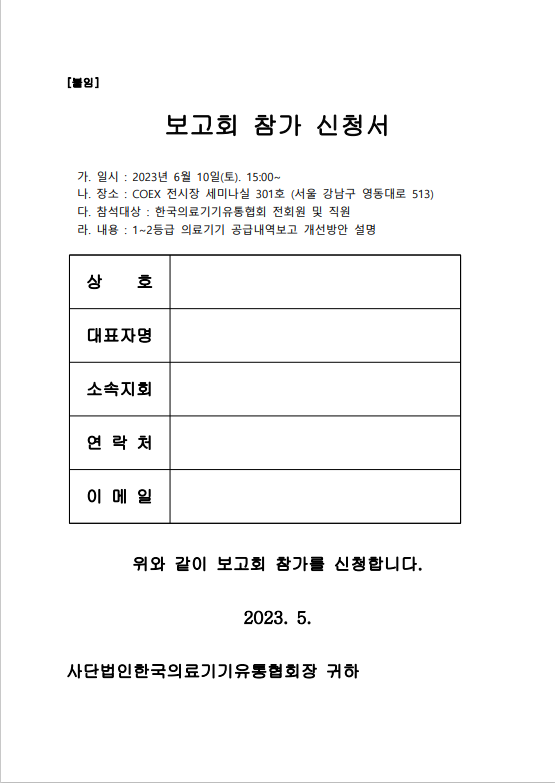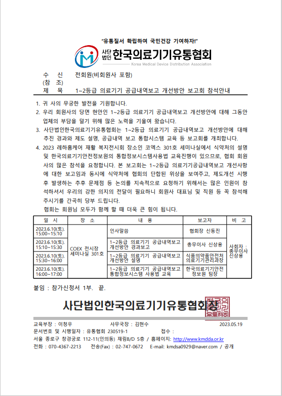 다. 참석대상 : 한국의료기기유통협회 전회원 및 직원