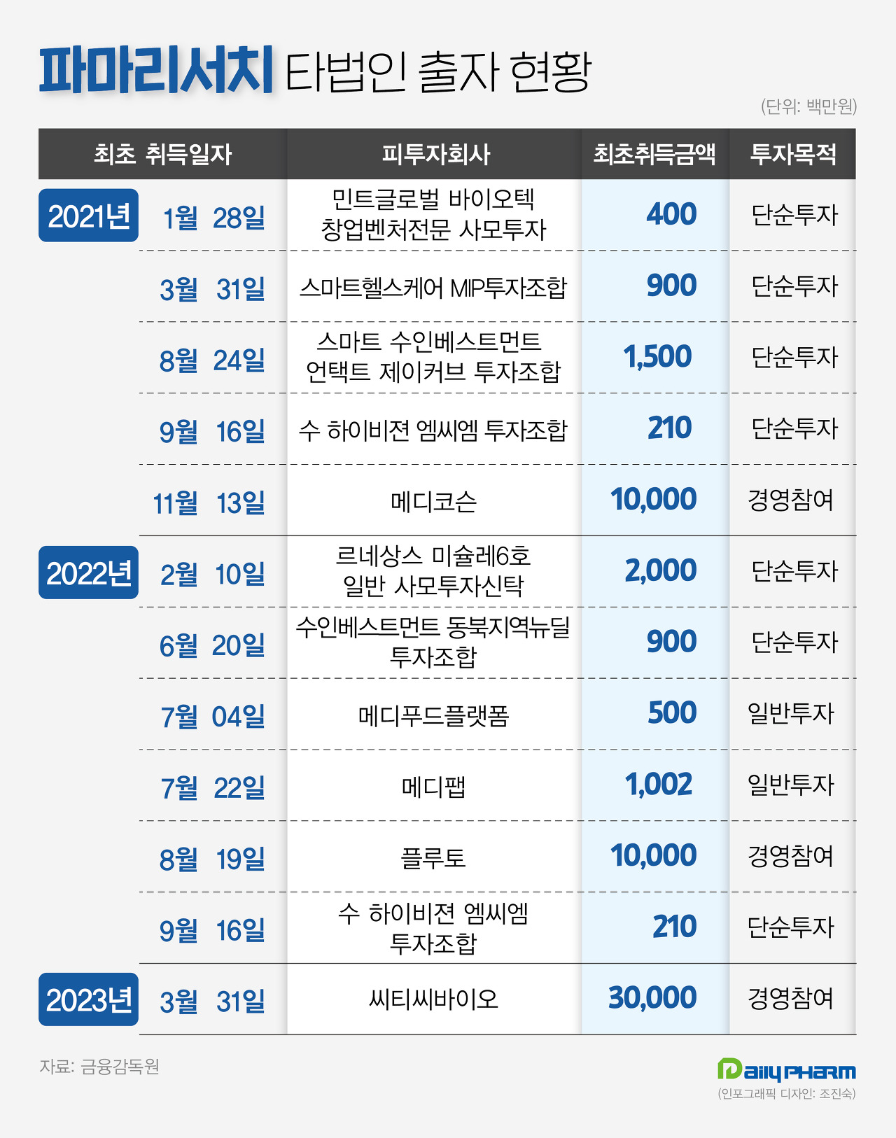 파라마리서치는 씨티씨바이오, 플루토 외에도 타 법인 투자에 적극적이다.