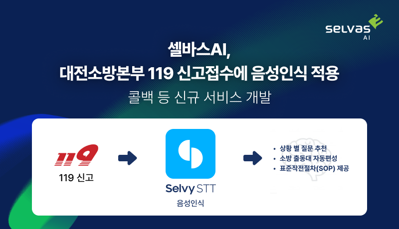 인공지능 전문기업 셀바스 AI는 대전소방본부의 '지능형 119 신고접수 플랫폼'에 음성인식 솔루션(Selvy STT)을 공급해 상용화했으며, 콜백 등 신규 서비스 등을 추가로 개발한다고 12일 밝혔다.