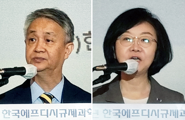▲ 김성민 에프디시규제과학회장(왼쪽)과 오유경 식약처장