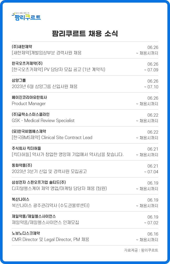 [팜리쿠르트 6월 둘째 주 채용정보 소식]