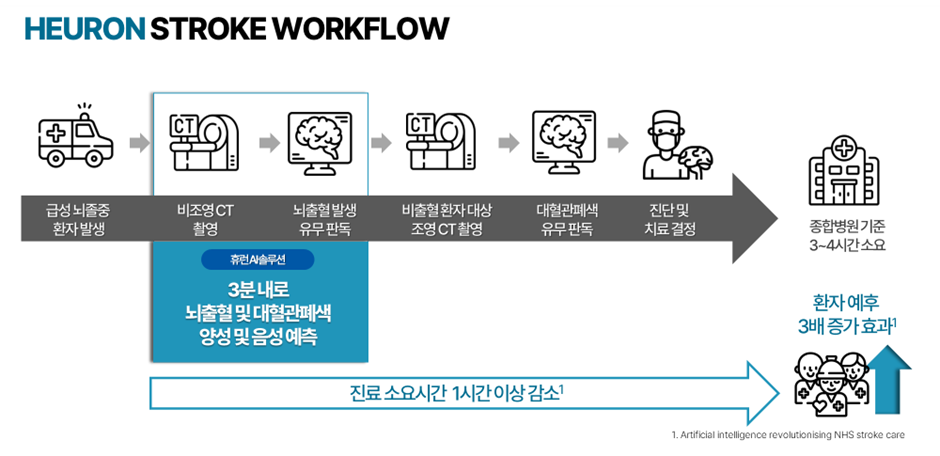 한편 휴런은 지난 5월 비조영 CT 기반의 ▲뇌출혈 의심환자를 자동 분류하는 Heuron ICH ▲응급 대뇌혈관 폐색 의심환자를 자동 분류하는 Heuron ELVO ▲뇌경색 중증도를 자동 산출하는 Heuron ASPECTS 3가지 소프트웨어를 통합한 Heuron StoCare Suite™에 대해 식약처 3등급 허가를 획득했다.