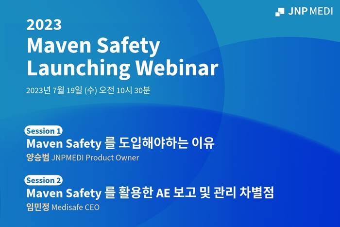 의료 데이터 플랫폼 기업 제이앤피메디(대표 정권호)는 의약품 안전성 관리 솔루션 '메이븐 세이프티(Maven Safety) 런칭 웨비나'를 오는 19일 개최한다고 밝혔다.