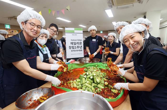 글로벌 컨슈머 헬스케어 전문기업 헤일리온(Haleon) 한국법인 전 직원들이 창립 1주년을 맞아 서울시 관악구에 위치한 신림종합사회복지관에서 인근 어르신들을 위해 계절 김치 만들기 및 도시락 배달 등 봉사활동을 가졌다.