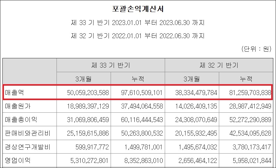 상반기 누적 매출액은 976억원, 영업이익은 84억원이다. 전년동기대비 각각 20%, 40% 늘었다. 모두 역대 최대 수치다.