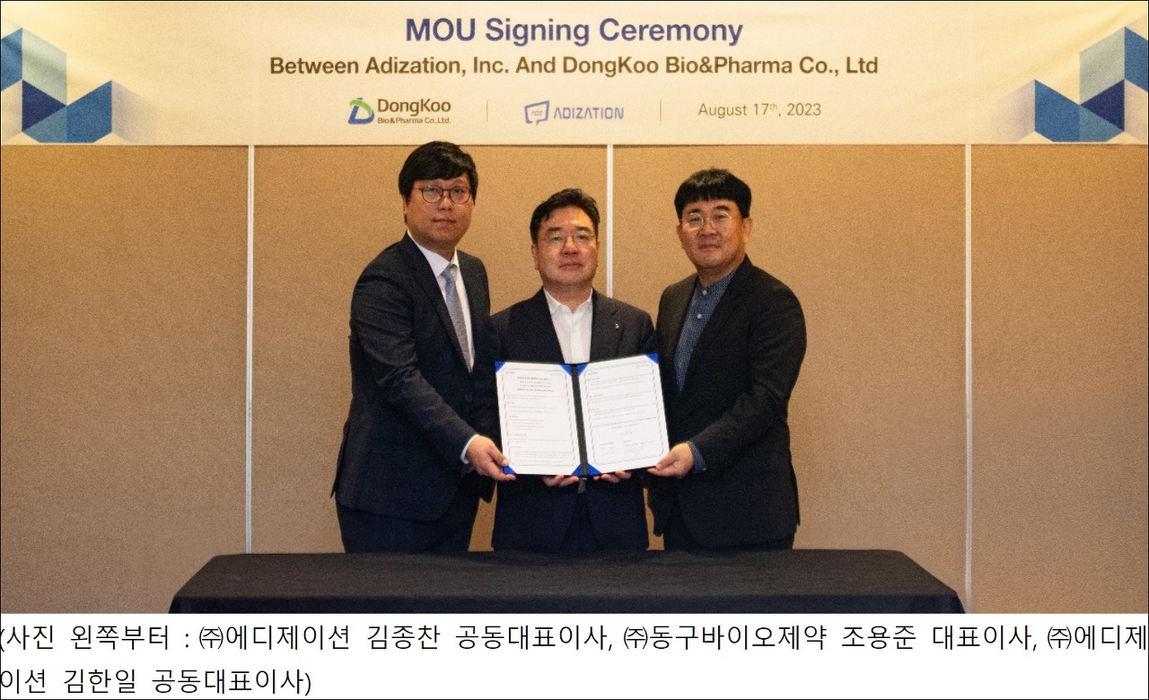 [데일리팜=이석준 기자] 동구바이오제약은 필리핀 헬스케어 그룹 에디제이션(Adization Inc.)과 필리핀 피부과 병원 프랜차이즈 사업 및 헬스케어 시장 진출을 위한 양해각서(MOU)를 체결했다고 22일 밝혔다.