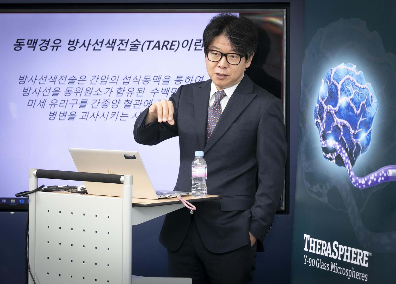 권 교수에 따르면 방사선색전술이란 방사성 물질 '이트리움-90'을 탑재한 미세 구슬을 간동맥으로 투여해 종양 안쪽에서 방사선을 발생시켜 암을 치료하는 방법이다.