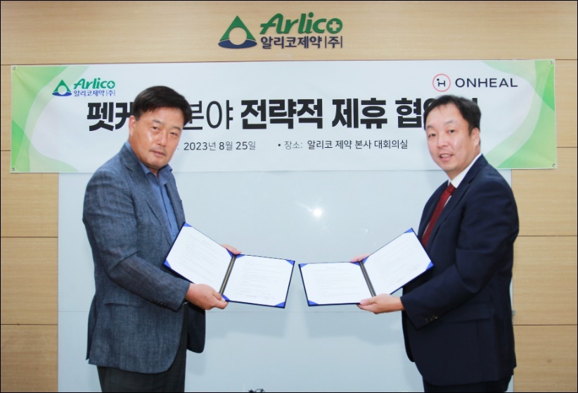 [데일리팜=이석준 기자] 알리코제약은 반려동물케어 전문 플랫폼기업 온힐과 포괄적 업무 협약을 맺었다고 25일 밝혔다.