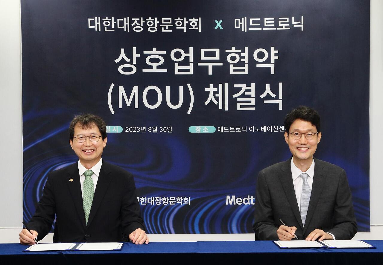 메드트로닉코리아(대표이사 유승록)와 대한대장항문학회(회장 윤서구, 이사장 강성범)가 대장항문 술기교육을 위한 상호업무협약(MOU)을 체결했다고 1일 밝혔다.
