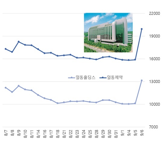 일동홀딩스·제약, 주가 동반 급등...10개월만에 상한가
