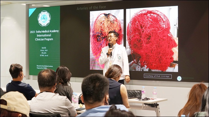 참석 의료진들은 국내 의료기관 중에서도 최고 수준의 스마트 장비와 시설을 갖춘 실습 교육기관인 이화의료원 이화의료아카데미에서 안면해부학 강의와 지젤리뉴를 이용한 라이브 핸즈온 시연을 참관했다.