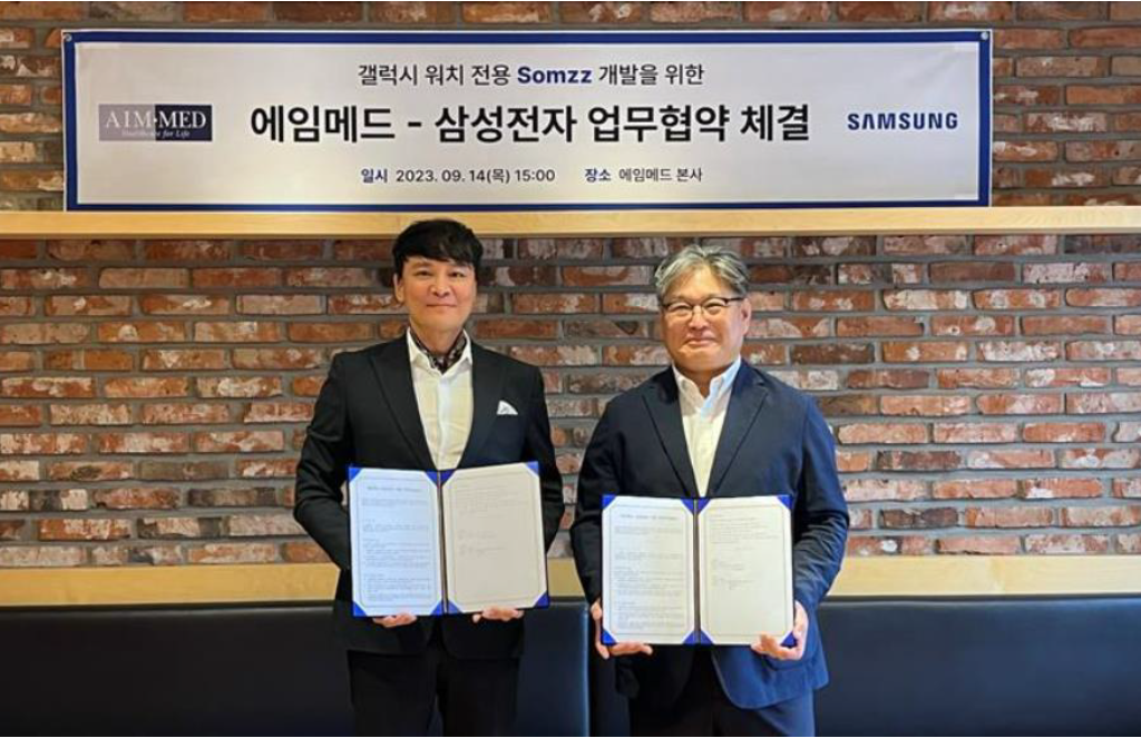 또한 향후 에임메드에서 개발되는 디지털 치료기기와 갤럭시 워치 간 지속적 협업모델을 개발할 뿐만 아니라 'EAP(임직원 건강관리 서비스)', '시니어 헬스케어 서비스' 등 에임메드에서 사업 중인 디지털 헬스케어 서비스와 전방위적인 협력을 해나가기로 했다.