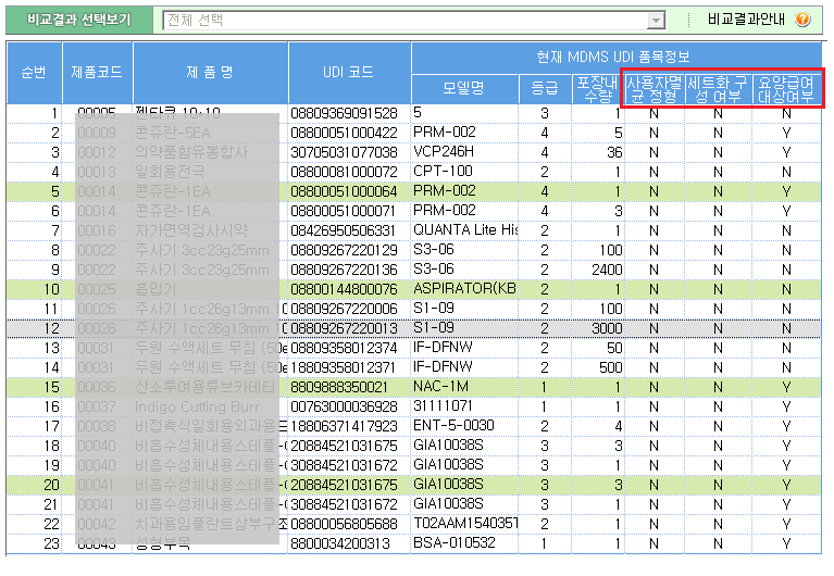 요양급여 대상여부를 UDI코드 기준으로 업데이트 하여 정확한 데이터로 보고 할수 있도록 기능 추가되었습니다.
