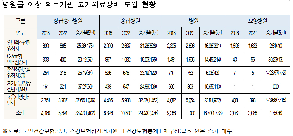 병원급 상급종합보다 MRI·CT 각각 3.6배와 2.4배 많이 보유