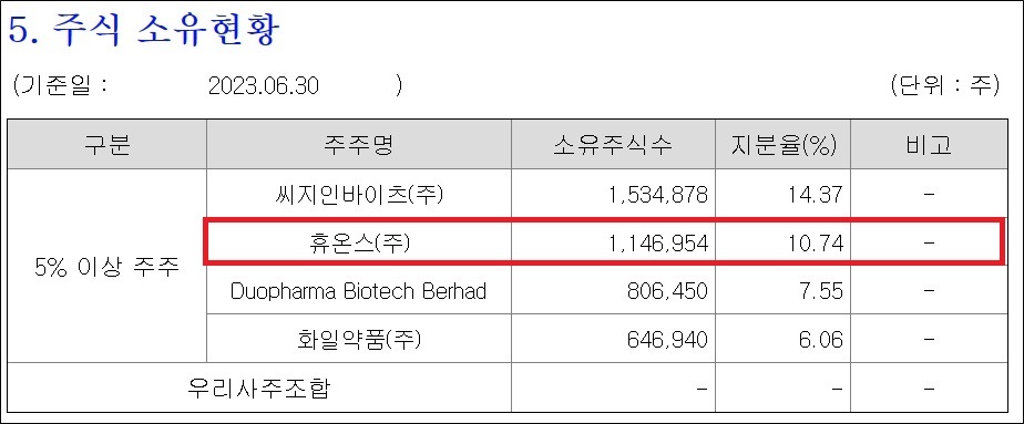 휴온스는 바이오벤처 팬젠 지분을 늘리고 있다. 8월 21일 기준 11.38%를 확보해 2대주주다. 1대주주는 14.37%를 쥔 CG인바이츠다.