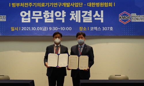 대한병원협회(회장 정영호, 이하 병원협회)와 범부처전주기의료기기연구개발사업단(단장 김법민)은 지난 1일 MOU를 체결했다. 이번 MOU는 의료기기 연구개발 전주기 지원과 의료기기 산업 육성 지원으로 국산 의료기기 보급·확산 등 의료기기산업을 가오하하는 데 의미가 있다.