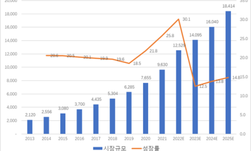 2013~2025년 중국 의료기기 시장규모(단위: 억 위안, %) 자료: 아이미디어 데이터센터