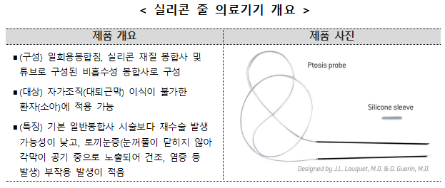 식약처에 따르면 이번에 신규 지정하는 희소·긴급도입 필요 의료기기는 기존에 수입되던 소아 안검하수 치료용 제품이 단종돼 작년 10월경부터 수입이 중단됨에 따라 대체 의료기기로 선정된 제품이다.