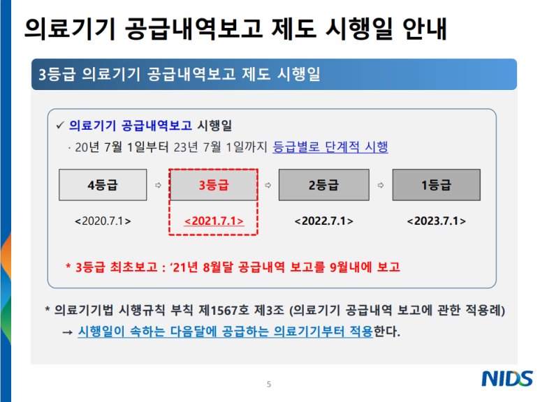 - 시행일이 속하는 다음달에 공급하는 의료기기부터 적용 한다.]