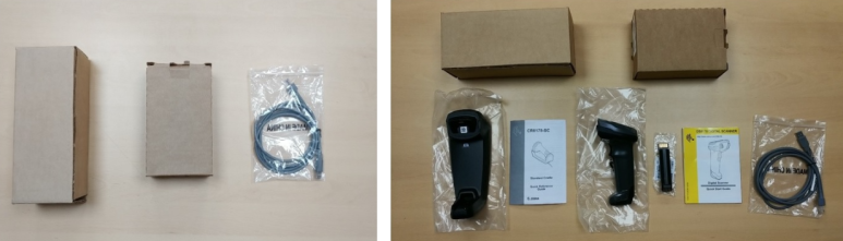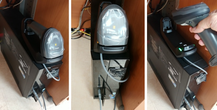 PC본체와 무선 핸드 스캐너 연결(USB포트 연결되면 자동인식 되면서 '삐삐' 소리 나면 연결완료 상태)