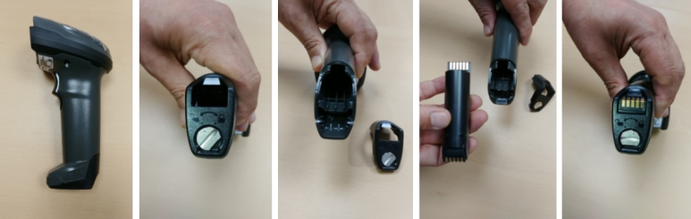 1. 스캐너본체 하단 동전을 이용, 잠금해제 2. 스캐너본체에 밧데리 장착 3. 밧데리 장착 후 잠금