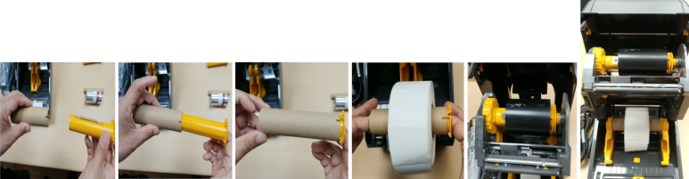라벨용지롤2(노랑색,베이지색), 라벨먹지롤1(노랑색) (별도제작)