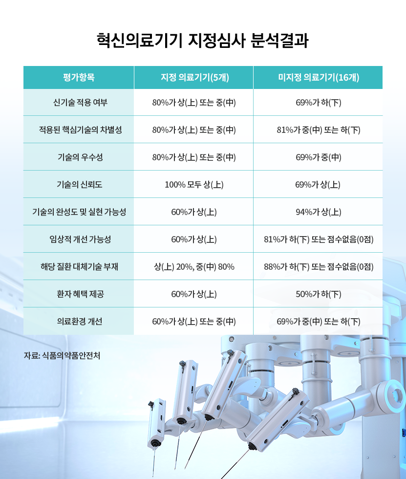 그 중 혁신의료기기 '지정'과 '미지정'을 가른 결정적 차이는 '신기술'과 '임상 유효성'이다.