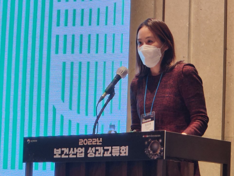 1일 서울 양재 엘타워에서 열린 '2022년 보건산업 성과교류회'에서 한국보건산업진흥원 의료기기화장품사업단 김유란 책임연구원<사진>은 체외진단의료기기 산업 육성 향후 지원방향에 대해 이같이 밝혔다.