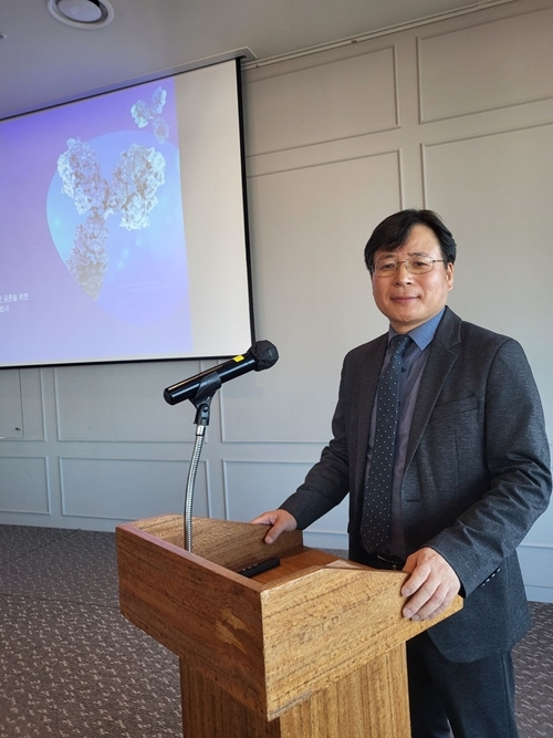 ▲ 기자간담회 진행 중인 바이오노트 조병기 대표이사.