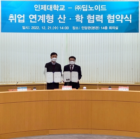 딥노이드는 인제대와 함께 현장실습, 기업견학 등 산학협력 프로그램 참여 및 채용 연계 협력과 더불어 AI 융합 인재 양성을 위한 SW중심대학사업, 3단계 산·학·연 협력 선도대학 육성사업(LINC 3.0) 연계 AI 교육과정 공동개발 및 AI개발 플랫폼 활용 교육 등을 협력해 나갈 예정이다.
