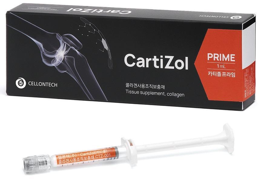 '카티졸(CartiZol, 콜라겐사용조직보충재)'은 관절 연골조직 표면층(연골막)의 주성분인 콜라겐 주사제형 의료기기로, 관절연골 보호 및 강화를 통해 통증 완화, 운동 기능 개선 등의 치료 효과를 나타낸다.