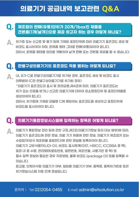| 의료기기공급내역 질문과답변 [공급내역보고] 일반소비자에게 의료기기를 판매하는 경우 공급내역 보고 대상에 해당되는지요? (0) | 2022.10.20 |