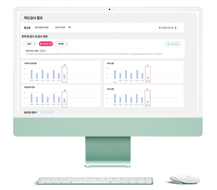 환자의 증상과 행동평가 및 척도 검사 결과를 하나의 플랫폼에서 관리할 수 있고 EMR차트에 간편하게 붙여넣기도 가능하다.
