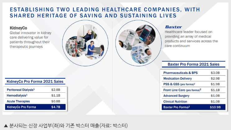 업계에서는 박스터가 핵심 부서를 독립 법인으로 분사한 후 매각 절차를 밟을 것으로 보고 있다. 매각한 금액을 인수 자금의 빚을 갚는 데 쓸 것이란 전망이다. 박스터는 지난 2021년 디지털 의료기기 전문 회사 힐롬(Hillrom)을 현금 105억달러(약 12조원)에 인수한 바 있다.