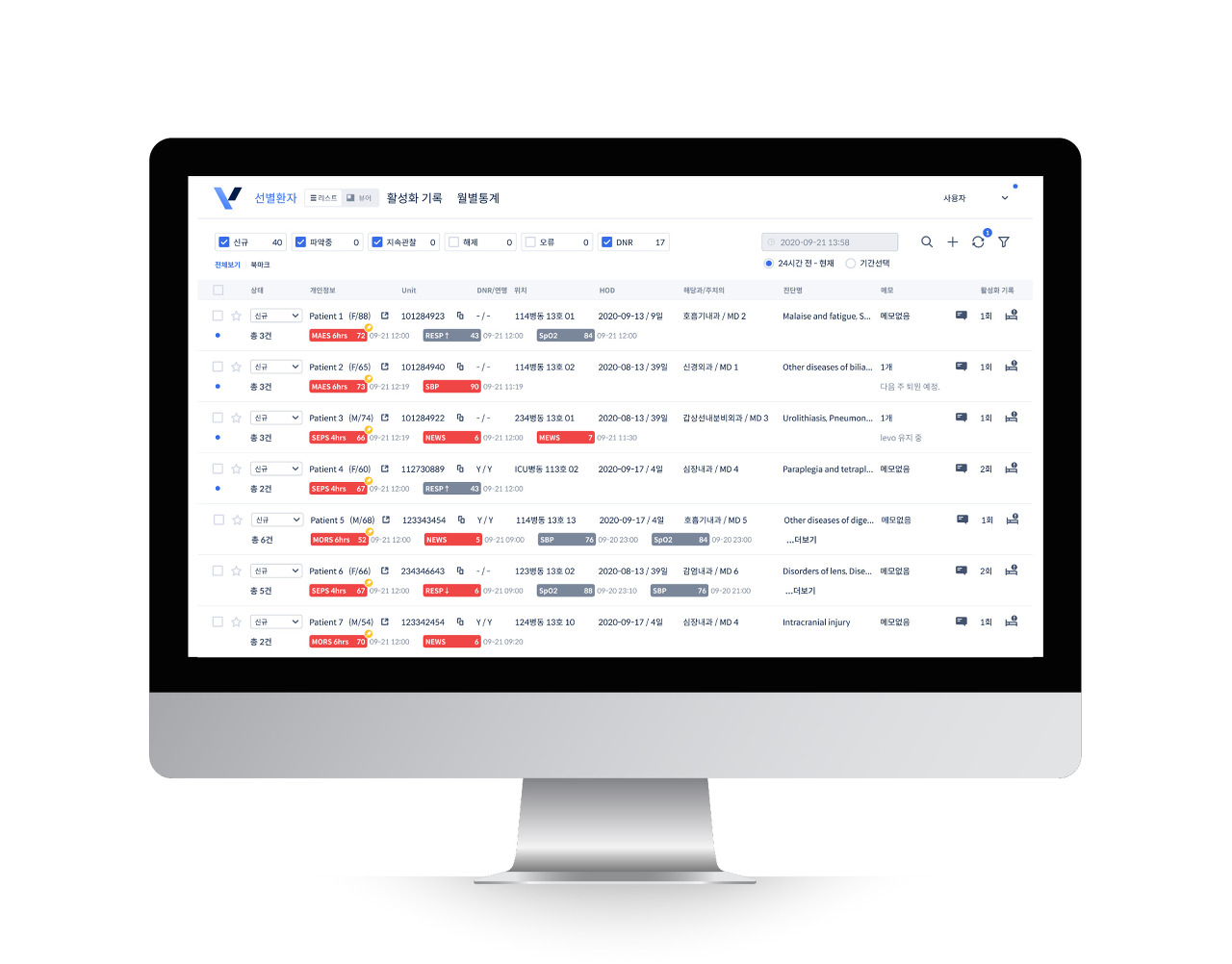 바이탈케어는 환자의 이상 징후를 정확하게 판단하기 위해 생체신호뿐만 아니라 혈액검사 결과 및 의식상태, 환자의 나이 등 총 19가지 데이터를 분석한다.