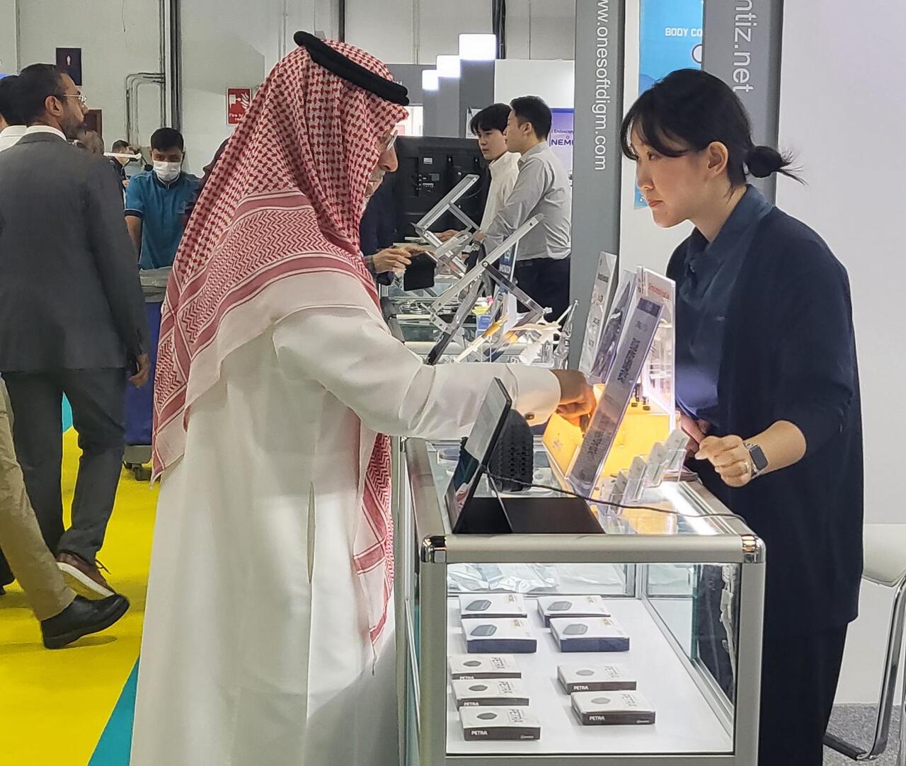 아랍헬스는 중동 최고 헬스케어 박람회로 꼽혔는데, 올해 코로나 극복 효과 등으로 68개국 13만명이 몰려 성황을 이루었다. 문제는 참가비용인데, 대기업은 수억원을 투자하기 쉽지만, 중소기업에게 수천만원의 참가비용이 큰 부담이었다. 이에 케이메디허브와 대구테크노파크가 국내 중소기업들을 위해 공동관을 운영했다.