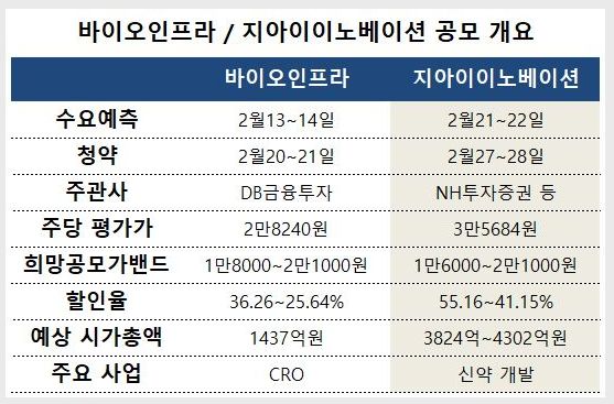 [데일리팜=황진중 기자] 바이오인프라와 지아이이노베이션이 몸값을 낮춰 기업공개(IPO)를 강행한다. 투자 환경이 어려워 공모자금이 기대에 미치지 않더라도 주식시장에 상장하는 것이 사업에 더 긍정적인 효과가 있을 것이라는 판단이다.