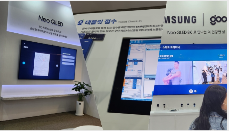 부스 한 켠에는 삼성전자와 협업해 Neo QLED 8K TV를 통한 비대면 진료 환경을 소개하는 공간이 마련됐다.