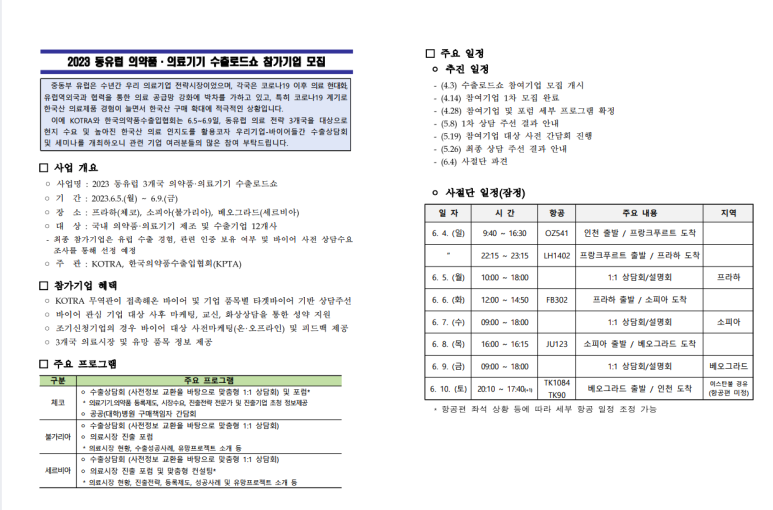 ? 사업명 : 2023 동유럽 3개국 의약품·의료기기 수출로드쇼
