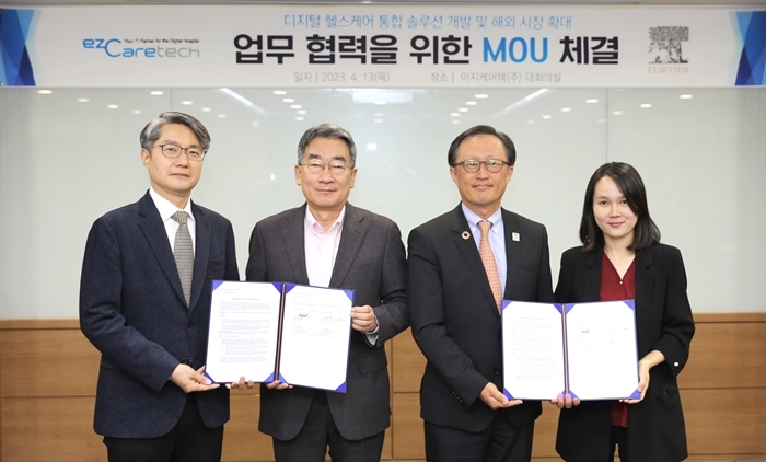이지케어텍(대표이사 위원량)은 연구논문 출판 및 정보분석 기업 엘스비어(Elsevier)와 디지털 헬스케어 솔루션 개발 및 해외시장 확대를 위한 업무협약(MOU)을 체결했다고 14일 밝혔다.