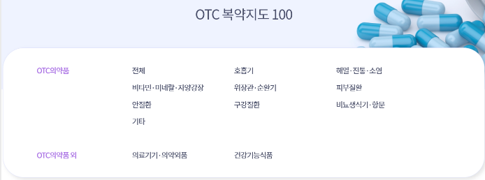 OTC 복약지도 코너에는 ▲호흡기 ▲해열·진통·소염 ▲비타민·미네랄·자양강장·위장관·순환기 ▲피부질환 ▲안질환 ▲구강질환 ▲비뇨생식기·항문 ▲의료기기·의약외품 ▲건강기능식품 분류로 질환별 제품 복약상담 정보가 담겼다.