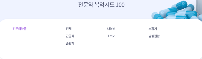 OTC 코너와 마찬가지로 질환별 제품 정보를 구분해서 볼 수 있고, 원하는 검색어로 제품 설명을 찾을 수도 있다.