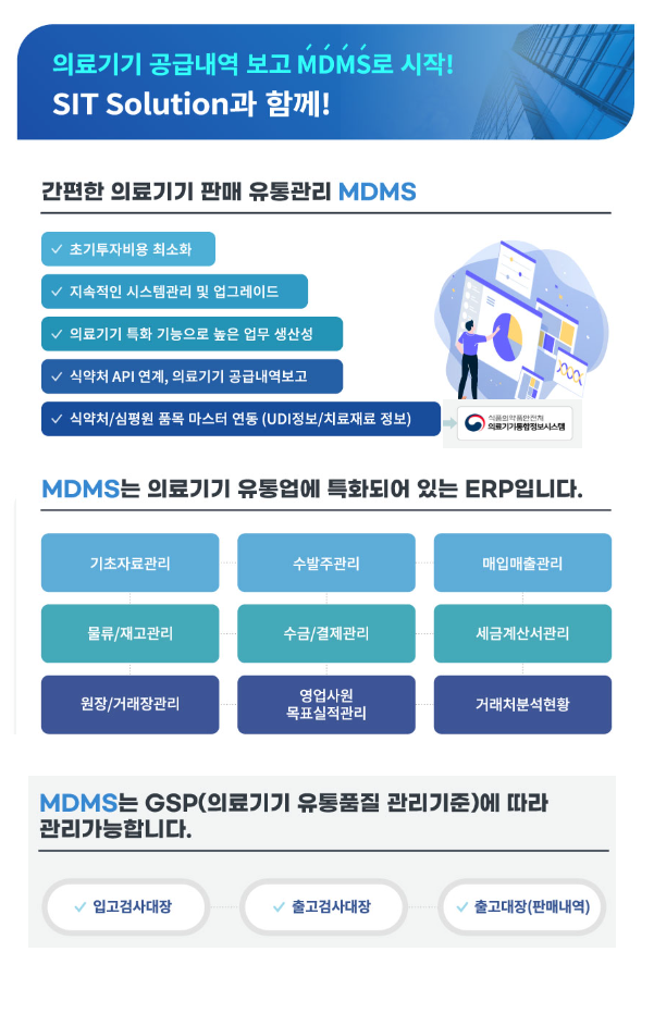 MDMS는 의료기기 유통관리에 특화되어 있는 ERP입니다.