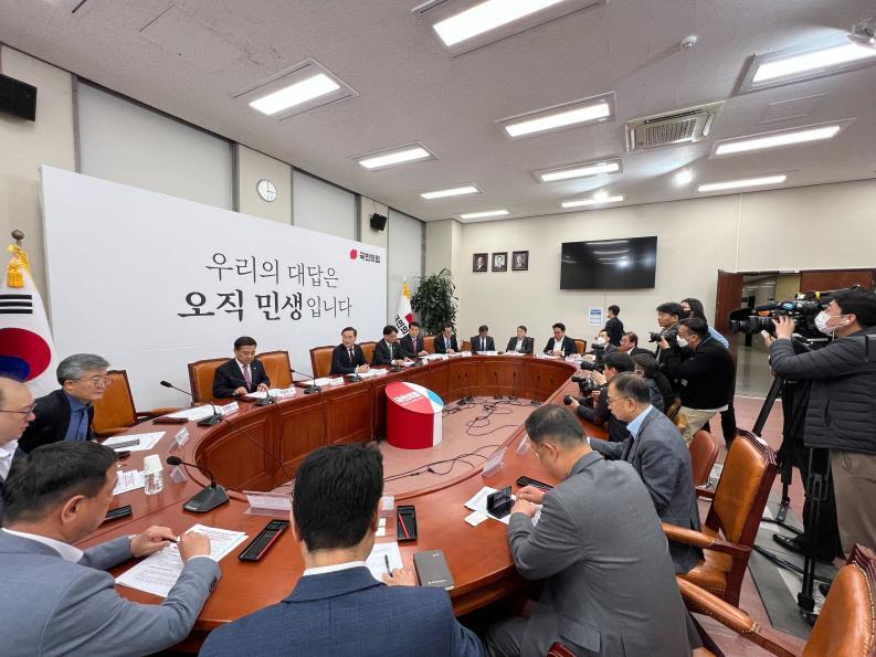 이날 회의에는 국민의힘 홍석준 국회의원과 백종헌 국회의원, 대통령실 임상준 국정과제비서관, 이정원 국무조정실 제2차장 등이 참석했다.
